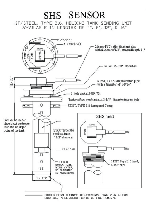 KUS Stainless Steel Holding Tank Sensor, 16"