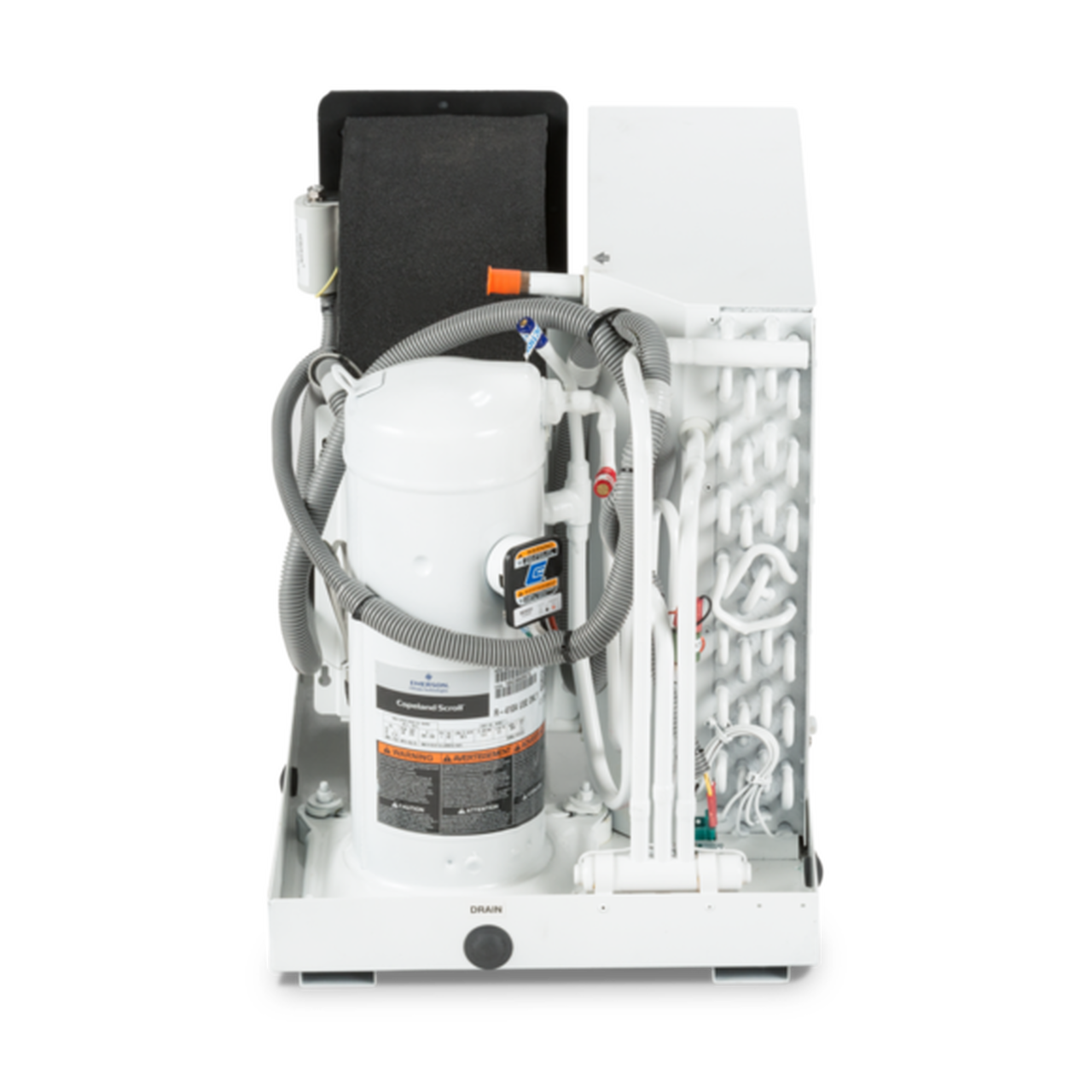- Unique compressor and reversing valve mounting reduces vibration